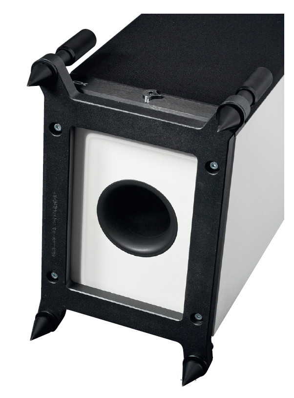 Z podobnego powodu - by uzyskać wysoką wydajność z jednego głośnika i wzmacniacza 500 W. Tunel bas-refleks wyprowadzono przez dolną ściankę, wykorzystując i tak "obowiązkowy" w konstrukcjach Avantgarde stelaż - cokół unoszący obudowę do góry.