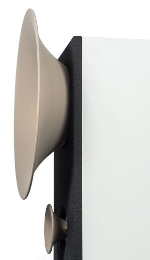 Obowiązująca tam konstrukcja stelażowa "wyprowadza" tubę średniotonową z głównej skrzyni, w której pozostaje jednak zainstalowany przetwornik wysokotonowy, który wówczas - w wyższych konstrukcjach - znajduje się na optymalnej wysokości.