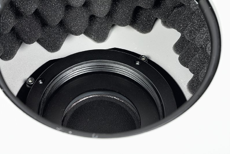 Za tylną stroną membrany znajduje się komora sięgająca tylnej ścianki, natomiast przestrzeń wokół części tuby, która wchodzi w głąb obudowy, też jest oddzielona i akustycznie niewykorzystana, a mimo to (na wszelki wypadek?) wytłumiona.