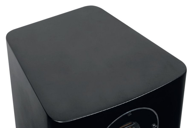 Front jest lekko wypukły (prawdopodobnie frezowany), płaskie boki delikatnie zbiegają się ku tyłowi, tył też jest płaski, ale wszystkie pionowe krawędzie wyraźnie zaokrąglono, co będzie miało pozytywne znaczenie akustyczne przy krawędziach przednich. Nie widać żadnych łączeń elementów obudowy, całość polakierowano na czarno lub biało, ale nie na wysoki połysk (jak w serii Vela), lecz na satynowo.