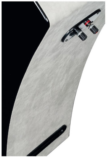 Gniazdo przyłączeniowe ulokowano na samej górze, aby połączenie z głośnikiem było jak najkrótsze; może to wydawać się mało praktyczne, bo powoduje "zwisanie" kabla podłączonego z zewnątrz, jednak procentuje przy instalacji zewnętrznego głośnika wysokotonowego. Dostarczona do testu para Vigo Classic była wykonana z mdf-u, wykończona Alcantarą i nie miała z tyłu podpory.