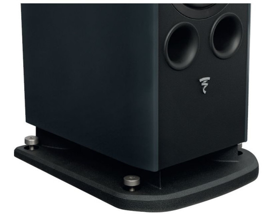 Kolejne dwa otwory znajdują się w widocznym miejscu – na froncie, tuż pod sekcją głośników niskotonowych. Takie rozmieszczenie otworów jest w konstrukcjach Focala spotykane, producent przypisuje mu szczególne właściwości: połączenia uderzenia i szybkości basu (z otworów przednich) z obfitością i rozciągnięciem (z otworu dolnego), co przemawia do wyobraźni, ale nie do końca zgadza się z teorią – wszystkie otwory będą emitowały podobną charakterystykę wynikającą z jednej częstotliwości rezonansowej, do której dostroi się układ oparty na jednej komorze wspólnej zarówno dla wszystkich otworów, jak i wszystkich przetworników niskotonowych.