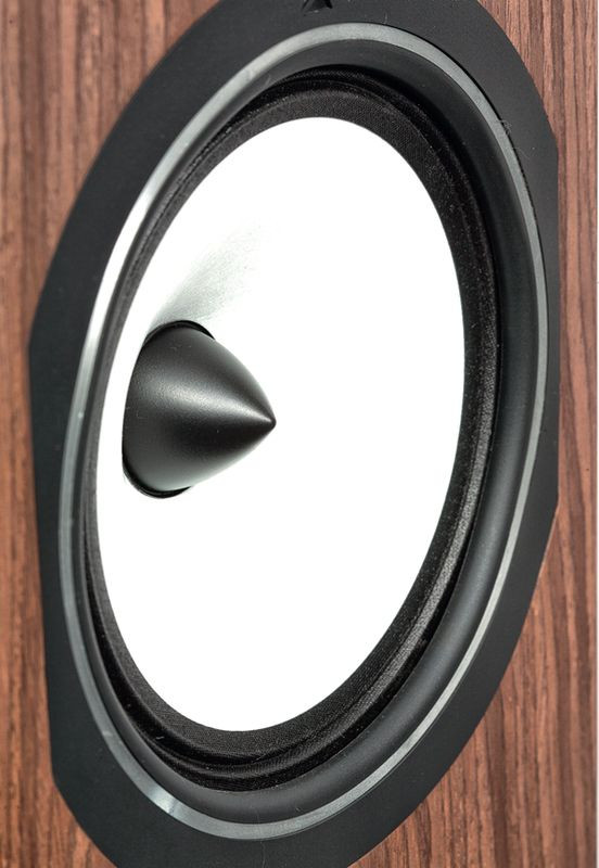 Głośnik średniotonowy też jest przedmiotem firmowych enuncjacji; podkreślane jest przede wszystkim zastosowanie czystej celulozy, bez żadnej impregnacji, powlekania czy nawet barwnika, co widać też w jej kolorze. Musi to więc być wyjątkowy gatunek celulozy, bo pulpa ma zwykle mało elegancki kolor brudnożółty, a biały wygląda przyjemnie.