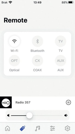 Konieczna jest wciąż aplikacja mobilna do obsługi całego systemu. Za jej pomocą wertujemy muzyczne biblioteki, ale telefon funkcjonuje wyłącznie jako sterownik – swego rodzaju pilot przekazujący do głośników wyłącznie sygnały sterujące.