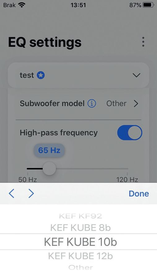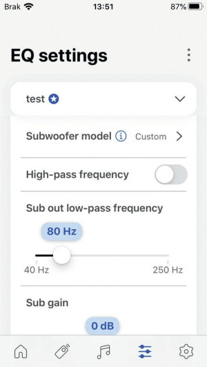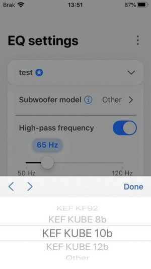 To wręcz korzystne, że w takiej opcji mamy nadwyżkę basu, dzięki czemu nie zabraknie go nawet w ustawieniach, w których "znika" – gdy nie tylko głośniki są ustawione daleko od ściany, ale i słuchacz, siedząc np. na środku pokoju, gdzie ciśnienie niskich częstotliwości jest zwykle najmniejsze. Możliwe jest też przesuwanie dolnej częstotliwości granicznej.