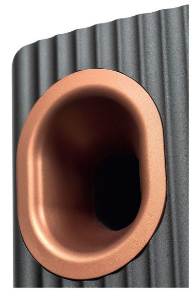 Dlaczego nie do 20 kHz albo nawet wyżej? Tego KEF nie wyjaśnia, być może tłumienie częstotliwości wyższych (od 5 kHz), których fale są krótkie i niosą mniejszą energię, jest już dostatecznie dobre dzięki klasycznemu, porowatemu materiałowi wytłumiającemu, wypełniającemu kanał, który prowadzi do puszki "Meta" znajdującej się za układem magnetycznym przetwornika nisko-średniotonowego.