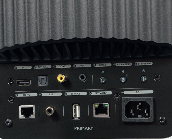 W wersji Wireless większa część tylnej ścianki jest jednak zajęta przez radiator wzmacniacza (przez który przechodzi tunel bas-refleks), a pod nim umieszczono zestaw gniazd i regulatorów.