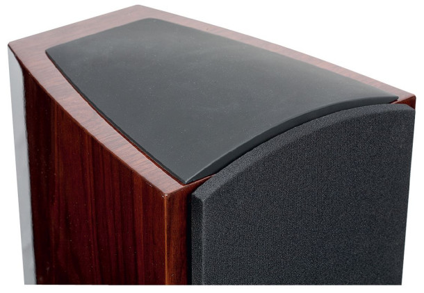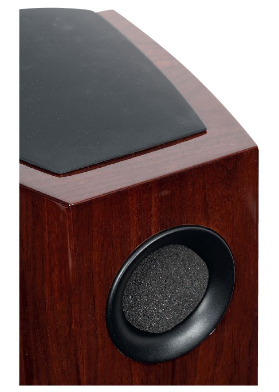 Boczne ścianki obudowy zbiegają się ku tyłowi, a na górną dołożono "czapkę" z miękkiego tworzywa; ta może wydawać się zbędną dekoracją, jednak może też pełnić rolę akustyczną - tłumić wibracje. Górna ścianka, mimo że niewielka, jest często ich poważnym źródłem, zwłaszcza w wysokich obudowach, gdzie uderzają w nią fale stające niskich częstotliwości.