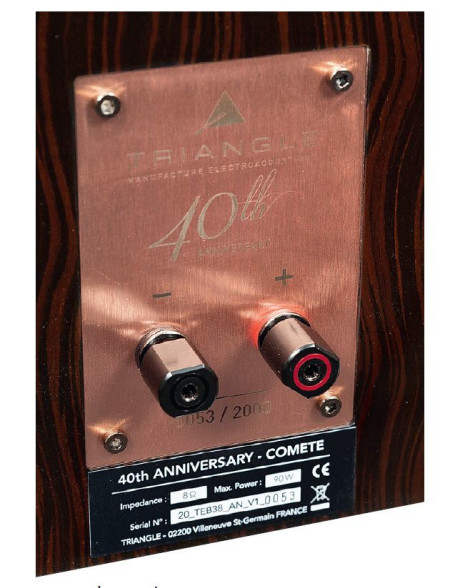 Zestaw błyszczących "dekoracji", które zawsze były w Trianglach widoczne, tym razem nabrał lekko złotego zabarwienia na skutek specjalnego anodyzowania elementów aluminiowych: pierścieni wokół głośników, logo i płyty terminala przyłączeniowego, na którym wygrawerowano duże "40th".