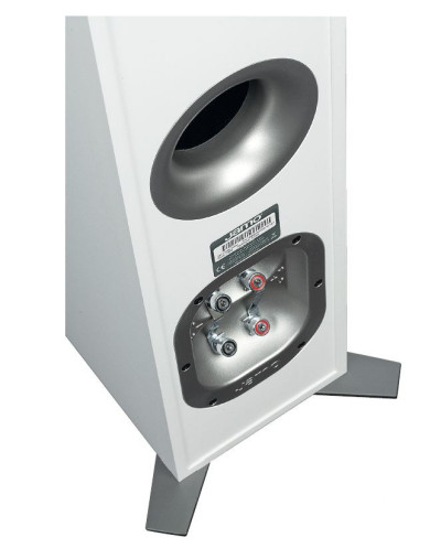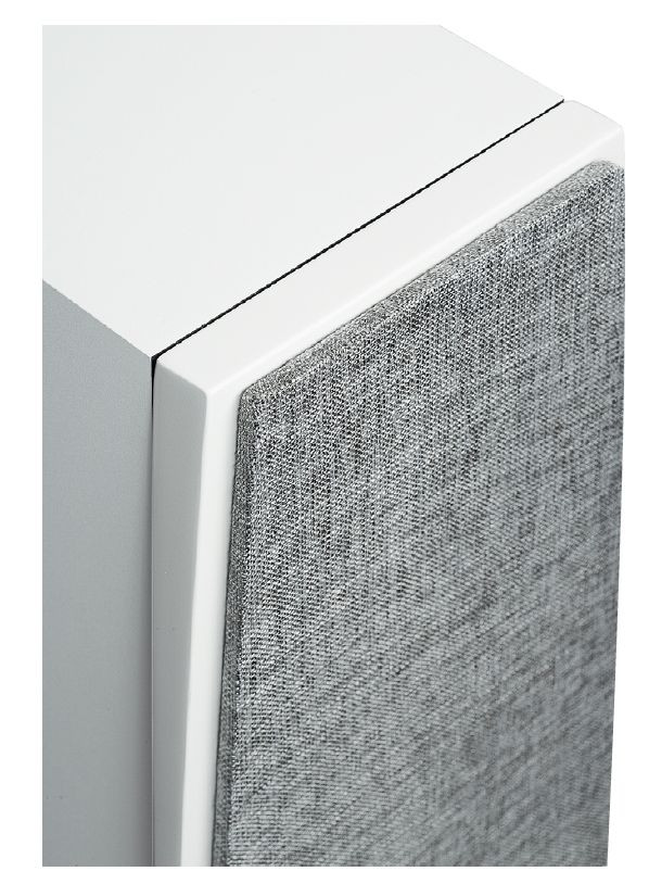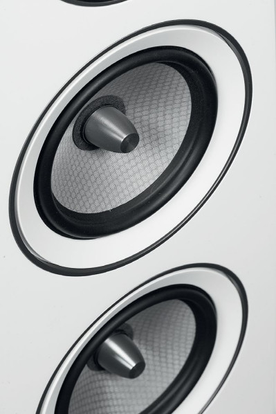 Wysokiej jakości przetworniki mamy w rozwiniętym układzie trójdrożnym, a techniczne zaawansowanie połączono z efektowną architekturą całkiem okazałej obudowy. Tutaj bardzo liczy się dobry pomysł – ładny i niedrogi – polegający na wyprofilowaniu panelu frontowego we "wrzeciono", co na pierwszy rzut oka wygląda tak, jakby taką formę przybrała cała obudowa: właściwa bryła jest już regularnym prostopadłościanem, wykończonym starannie, ale bez szaleństw, białą lub czarną folią drewnopodobną.