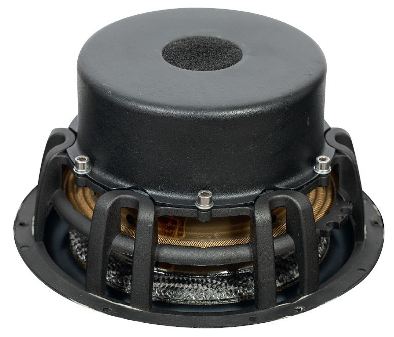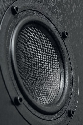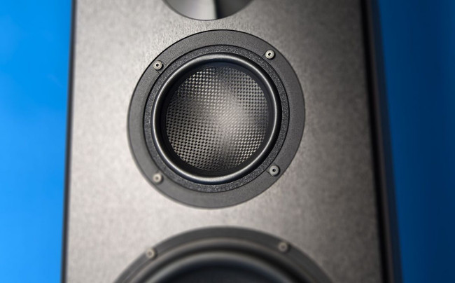 Głośnik średniotonowy też ma mieć membranę "sandwiczową", ale tutaj producent nie wspomina już nic o warstwie środkowej, więc może chodzi o dwie (lub nawet więcej) cienkich warstw z włókna węglowego?