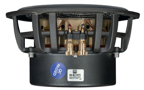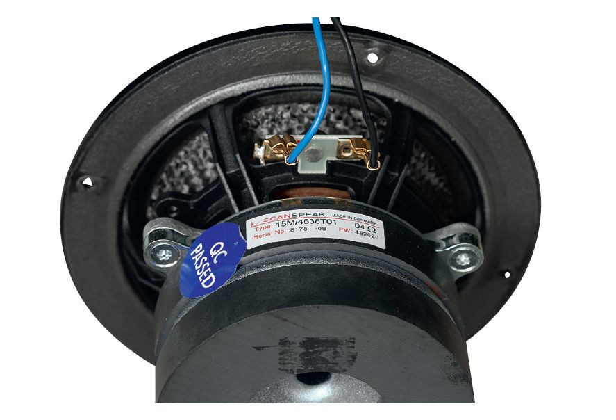 Głośnik średniotonowy zmontowano w Scan-Speaku (gdzie w tym celu dostarczono "nanomembrany"), na co wskazuje charakterystyczny profil kosza, a potwierdza metka z nazwą duńskiego producenta i oznaczeniem typu... oczywiście przygotowanego specjalnie dla Magico.