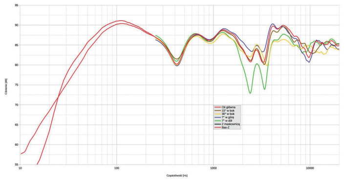 Charakterystyka wysokotonowego budzi najwięcej zastrzeżeń, nawet w swoim wąskim zakresie pracy jest mocno poszarpana, prawdopodobnie w większym stopniu odbiciami od licznych okolicznych krawędzi, niż cechami samego przetwornika. Ale wydaje się, że mimo wszystko można było ją lepiej ułożyć filtrowaniem, zwłaszcza obniżając poziom 4–5 kHz niższym filtrowaniem dolnoprzepustowym.