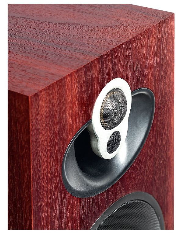 Moduł wysokotonowy, sam w sobie będący czymś nietypowym, dodatkowo zwraca na siebie uwagę, "zwisając" na tle niezwykłego wyprofilowania, biegnącego w głąb obudowy.