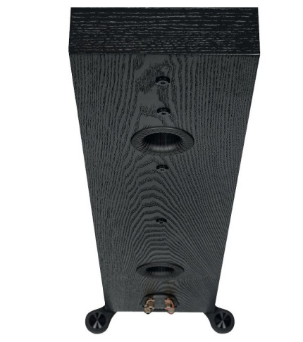 Na tylnej ściance znajdują się dwa otwory bas-refleks na wysokościach pozwalających przypuszczać, że niskotonowe mają niezależne komory. Jest jednak jedna wspólna, ale zastosowanie dwóch otworów wciąż ma sens, który już nieraz omawialiśmy, a na tym przykładzie dokładnie pokazujemy w Laboratorium.