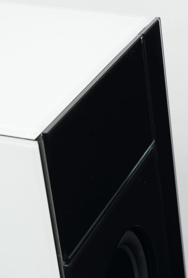 Głośniki na froncie nie są chronione żadną maskownicą, ta jednak popsułaby estetyczny efekt szklanych paneli. Jest kilka wersji kolorystycznych. Niezmienny pozostaje czarny szklany panel głośnikowy i podobne dwa sąsiednie (boczny pionowy i górny poziomy), które w sumie też tworzą prostokąt, natomiast pozostałe powierzchnie mogą być czarne, białe lub antracytowe (wciąż ze szklanymi panelami) albo z panelami fornirowanymi i lakierowanymi na wysoki połysk – hebanowe, palisandrowe lub orzechowe.