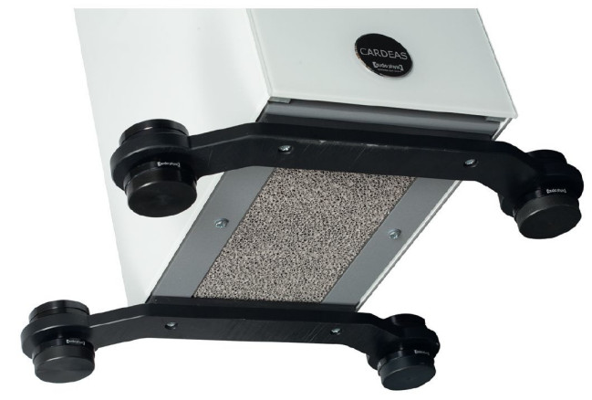 Opcjonalnie można dokupić stopy najbardziej zaawansowane – z zawieszeniem na polu magnetycznym - dzięki bardzo silnym magnesom cała kolumna dosłownie "lewituje", całkowicie odprzężona mechanicznie od podłoża.