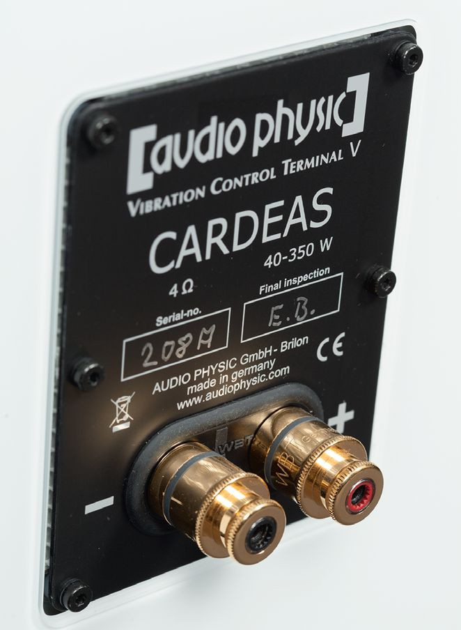 Indeks V można też znaleźć niedaleko nazwy Cardeas, na terminalu głośnikowym, w napisie "Vibration Control Terminal V". Do terminala i innych detali jeszcze wrócimy, bo mają one szczególne znaczenie w każdej konstrukcji Audio Physica, a zwłaszcza tak nowej i prestiżowej. Jednak najpierw rzeczy najważniejsze.