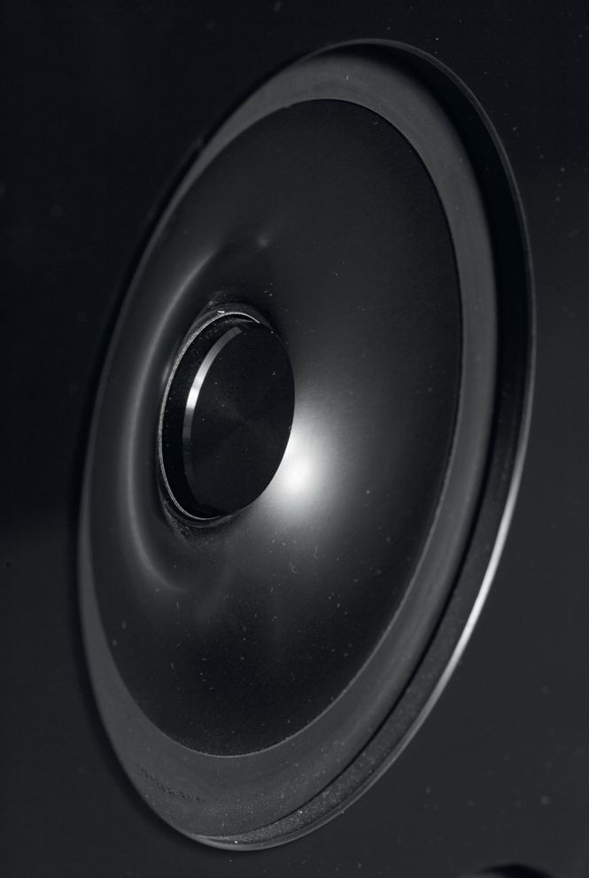 Wydawało się, że stożkowe wysokotonowe odstawiono już do lamusa… Ale Audio Physic taki kształt membrany zrehabilitował, wskazując, że dzięki większej powierzchni może mieć wyższą efektywność (od standardowej, około 25-mm membrany kopułkowej), a dzięki umiarkowanej średnicy i masy cewki, pasmo nie zostanie ograniczone (jak zostałoby przy tak dużej kopułce połączonej z dużą cewką).