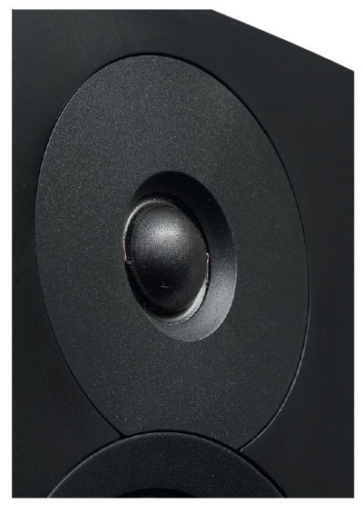 Przetwornik wysokotonowy jest wedle zapewnień producenta dokładnie taki sam jak w droższych Evokach i publikowane zdjęcie to potwierdza. To oczywiście 28-mm kopułka jedwabna, za którą znajduje się rozpraszający ustrój Hexis, a za magnesem (przez którego środek biegnie kanał) puszka wytłumiająca falę od tylnej strony membrany.