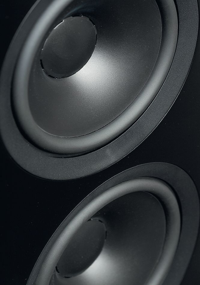 Dynaudio Emit 50 nawet najmniej zaawansowanym audiofilom od razu komunikuje, że jest układem trójdrożnym – wskazuje na to wyraźnie mniejszy średniotonowy (od niskotonowych), cały układ jest ustawiony konwencjonalnie, z wysokotonowym umieszczonym najwyżej.