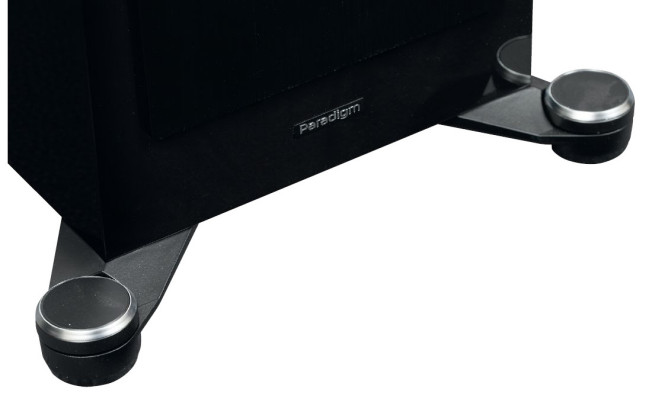 Paradigm od dawna stosuje odsprzęganie głośników niskotonowych (Advanced Shock-Mount), czyli elastyczne mocowanie, służące zatrzymaniu wibracji między koszami a obudową. To jednak, zgodnie z prawami fizyki, maksymalizuje wibracje samych koszy – określona (w danym momencie) siła oddziałuje na mniejszą masę (samego kosza, a nie całej obudowy), co zwiększa jej przyspieszenie.