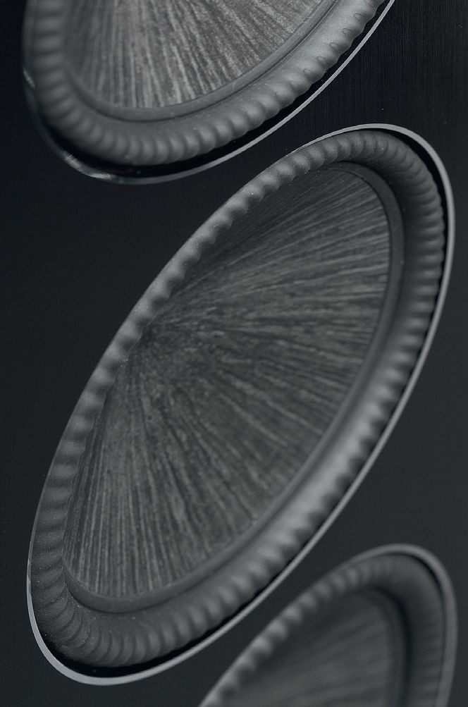 Z PPA (Perforated Phase Aligning) mieliśmy już kilka razy do czynienia w konstrukcjach Paradigma różnych serii (jest również w Personach i Premierach) i za każdym razem zastanawialiśmy się, na ile jego stosowanie wynika z konieczności zabezpieczenia przed mechanicznym uszkodzeniem (na pewno kosztownej i delikatnej, berylowej membrany w Personach), realizacji celów akustycznych przedstawianych przez producenta (korekty faz fal biegnących z różnych części membrany i wskutek tego wyrównania charakterystyki przetwarzania) i wreszcie nadania Paradigmom wyrazistego, oryginalnego wyglądu (durszlak natychmiast zwraca uwagę i prowokuje pytania...).
