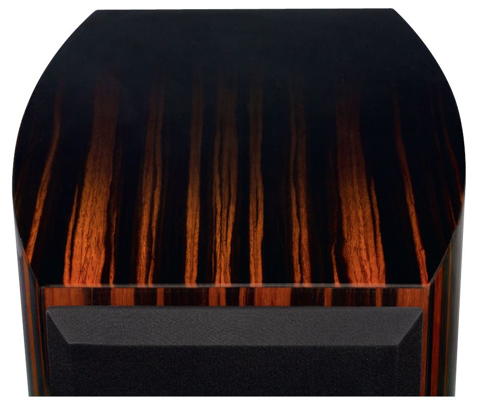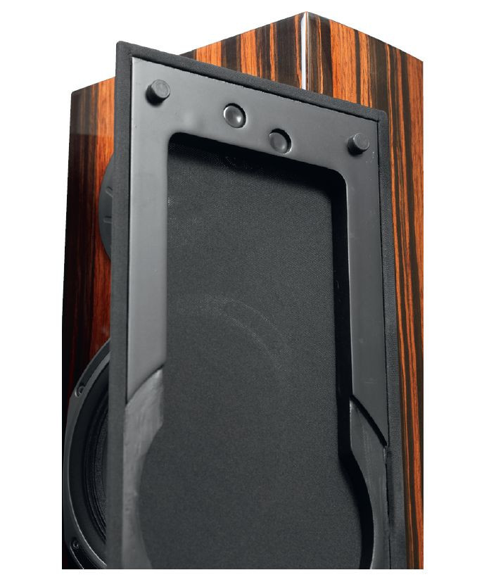 Są jednak inne korzyści akustyczno-estetyczne. Przy wąskiej przedniej ściance, która determinuje wizualną szczupłość kolumny, i przy umiarkowanej głębokości, powstaje większa objętość. Ponadto ścianki złożone z kilku warstw wygiętego HDF-u są sztywniejsze niż płaskie.