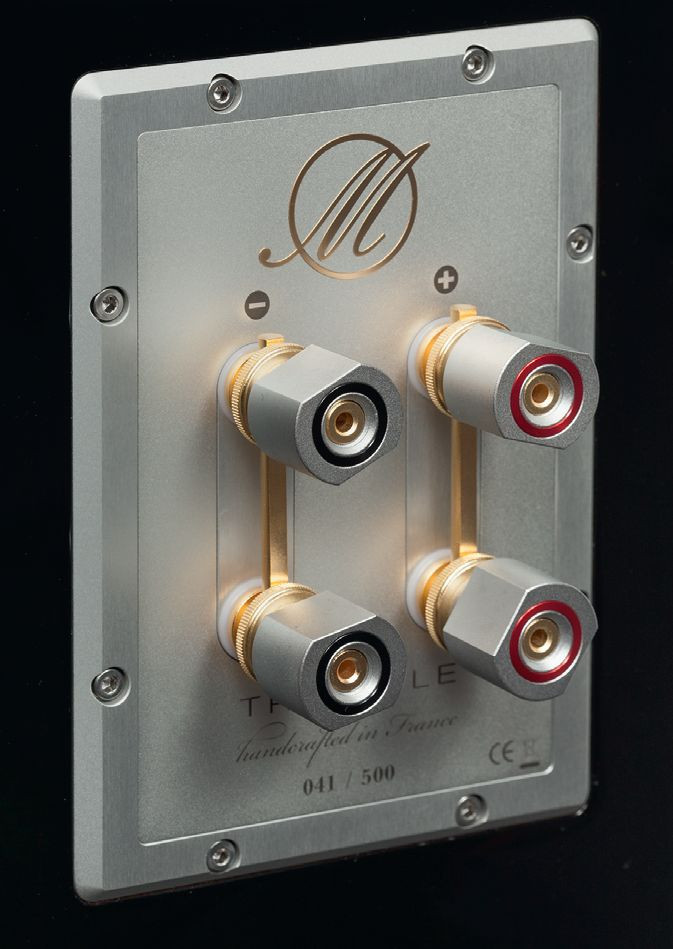 Wracając więc jeszcze do zwrotnicy, producent wymienia udoskonalenia polegające na zastosowaniu "tylko wysokiej jakości komponentów wybranych po wielu godzinach odsłuchów", w tym kondensatorów opracowanych we współpracy z (francuską) firmą SCR, rezystorów ceramicznych o niskiej indukcyjności i cewek powietrznych nawiniętych grubym drutem. Mocnym audiofilskim akcentem jest okablowanie dostarczone przez firmę Audioquest, wykonane z miedzi LGC.