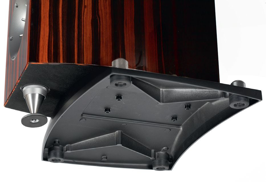 Wedle wyjaśnień producenta, aby pozostawiając obciążenie na cokole przekierować wibracje do frontowego stożka, połączenie obudowy z cokołem jest izolowane polimerem o wysokim tłumieniu. Kolec ma przechwycić wibracje… i nie wiadomo co dalej.