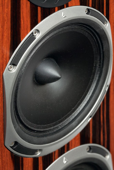 Monitor Audio preferuje małe średniotonowe, Triangle – duże, najczęściej takiej samej średnicy jak niskotonowe, co dotyczy Cello (i też trójdrożnego Quatuora). Niskotonowe i średniotonowy to 18-tki, nawet trochę większe (biorąc pod uwagę średnicę koszy).