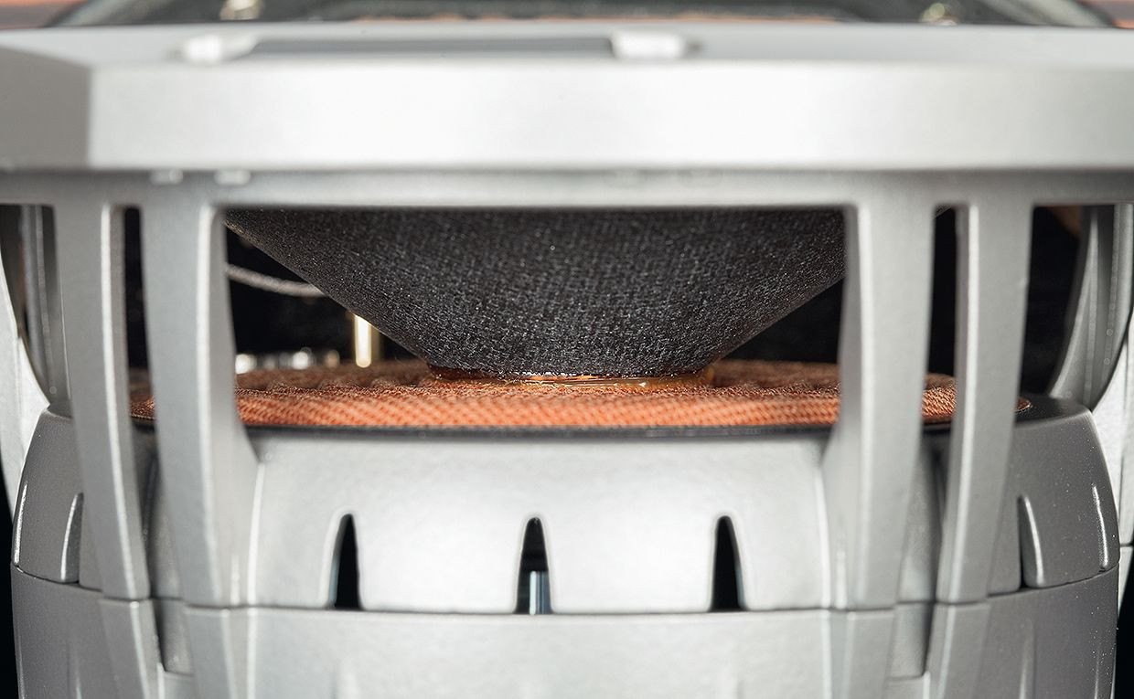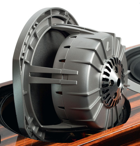 Głośniki niskotonowe mają membrany zupełnie innego typu, chociaż też z udziałem celulozy, ale w ramach struktury "kanapkowej". Zewnętrze warstwy z włókna szklanego są połączone celulozowym rdzeniem, ale – jak sugerują rysunki producenta – nie jest to jednolita, typowa warstwa celulozy, lecz lekka "siatka".