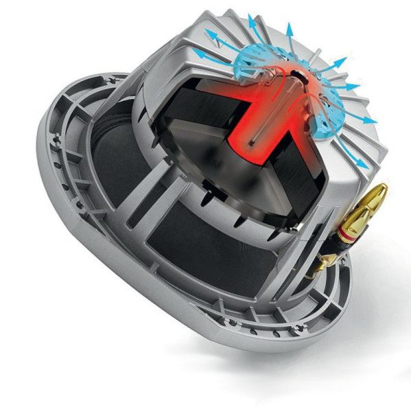 Firmowe rozwiązanie LHS2 koncentruje się na chłodzeniu układu napędowego, co nie tylko zwiększa maksymalną moc, ale też zmniejsza zniekształcenia w całym zakresie pracy.