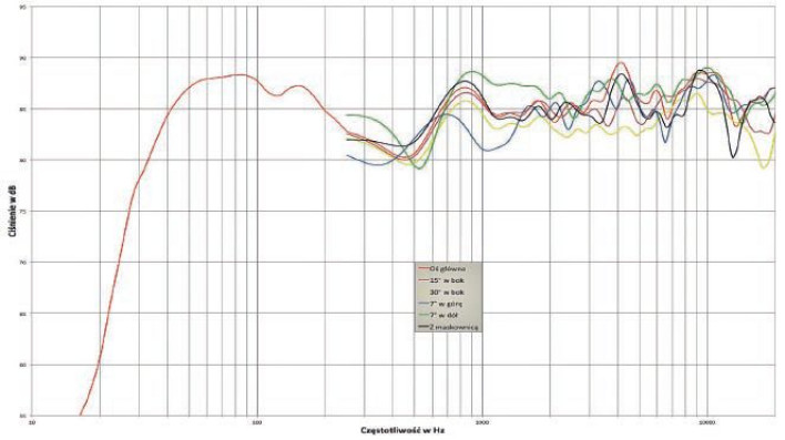 Ale nawet to nie wyjaśnia, dlaczego tak silnie, od niewielkiej w sumie zmiany kąta (+/- 7O), uzależniony jest poziom w okolicach 1 kHz - pewien trop podsuwa informacja, że zastosowano filtry 1. rzędu...czyżby to już interakcja z głośnikiem wysokotonowym? A jednak przejście przez drugą częstotliwość podziału (według danych producenta - 3,2 kHz) nie zostawia żadnego śladu - bardzo ciekawe... I co też intrygujące, ale korzystne, maskownice wprowadzają relatywnie niewielkie zmiany, można je więc zostawić założone, a dla wyglądu tych kolumn to przecież bardzo ważne.