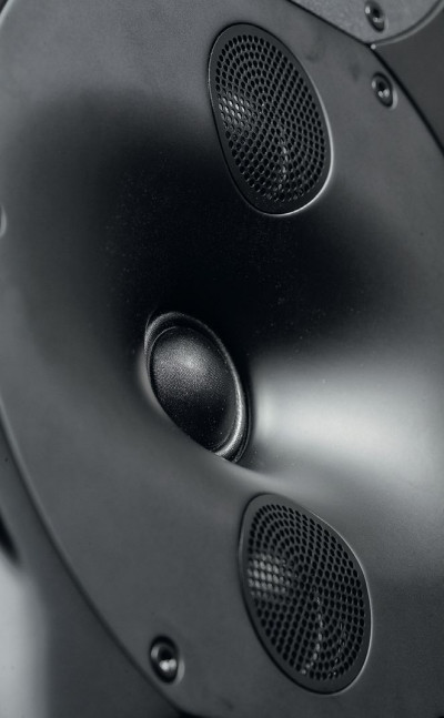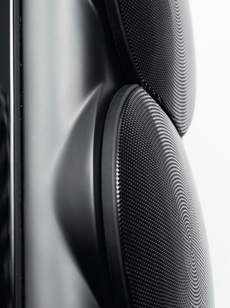 Ten dyskretny szczegół wiąże się z największą osobliwością konstrukcji. Otóż przez te kratki promieniują dwa dodatkowe przetworniki wysokotonowe. W sumie są więc trzy 25-mm kopułki wysokotonowe, wszystkie takie same, jedwabne, ale działające w nieco różnych warunkach (falowodach) i inaczej filtrowane.