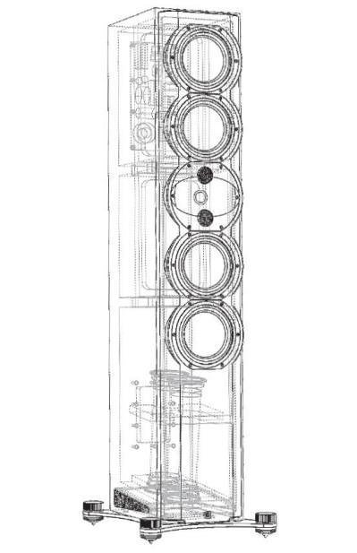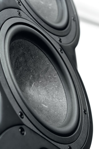 Ważniejsze od takiego klasyfikowania jest zrozumienie zasady pracy całego zespołu, która może być trudna do zaszufladkowania. Patrząc od frontu, możemy tego nie zauważyć, ale kolumna jest lekko pochylona do tyłu – aby oś główna całego układu, wychodząca oczywiście z centrum, pokrywająca się z osią głośnika wysokotonowego, była skierowana lekko do góry, gdyż głośnik wysokotonowy znajduje się na wysokości 82 cm, nieco zbyt niskiej, aby uznać ją za optymalną względem uszu siedzącego słuchacza. Jakie to ma praktyczne znaczenie, wyjaśniamy w Laboratorium.