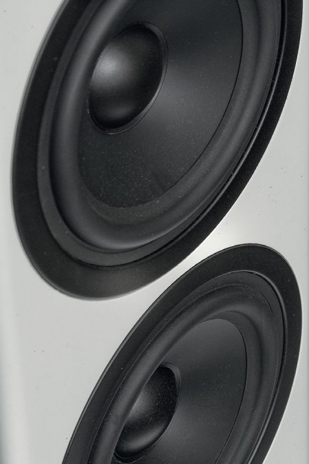 Głośniki niskotonowe to 18-tki z powlekanymi membranami celulozowymi na gumowym zawieszeniu, ponadto wiemy o nich niewiele więcej ponad to, co pisze sam producent (odlewany kosz, podwójny układ magnetyczny), bowiem zainstalowane są w sposób na tyle utrudniający demontaż, że nie ryzykowaliśmy uszkodzenia obudowy – pierścienie maskujące mocowanie kosza są wprawione bardzo ciasno. Na podstawie pomiarów możemy potwierdzić, że układy magnetyczne są silne, charakterystyki wskazują na niski współczynnik Qts.