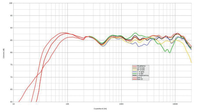 W standardowy sposób możemy uchwycić w ścieżce +/-3 dB charakterystykę od 40 Hz do 20 kHz (w wariancie bas-refleksowym), na osiach głównej, +7° i 15°.