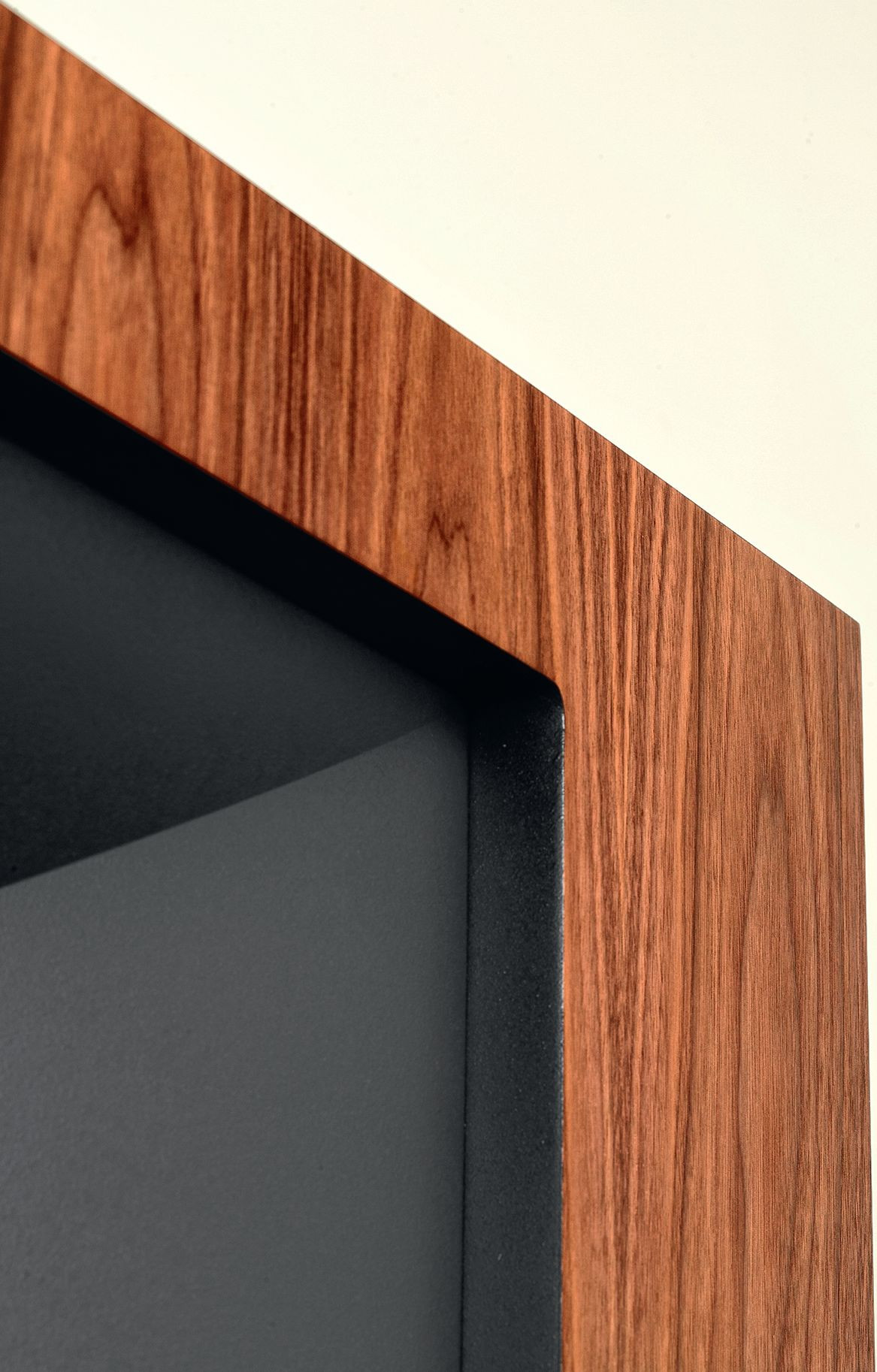 Większość powierzchni jest polakierowana na czarny półmat, nie są one nawet idealnie gładkie, o takich fanaberiach jak wysoki połysk oczywiście nie ma mowy (na szczęście). Jednak powierzchnie te nie są widoczne od frontu; tutaj obudowę oklejono fornirem orzechowym, do wyboru w naturalnym kolorze lub lakierowanym na czarno (black ash); jest też wersja w fornirze tekowym – Jubilee 75 Anniversary; ma ona również inny materiał maskownic (zasłaniających wyloty tub niskotonowych) wykonanych z wełny owczej, ale raczej nie w celach akustycznych, lecz estetycznych.