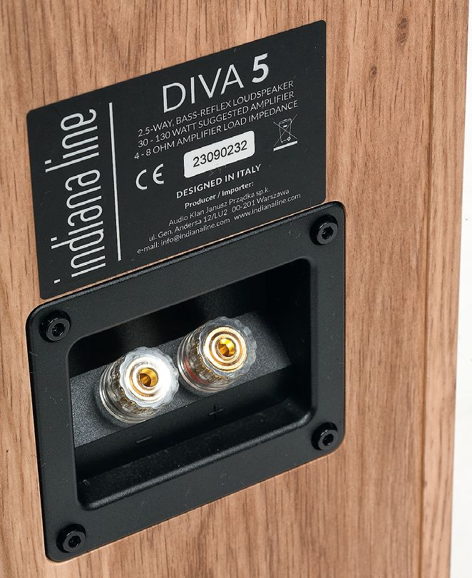 Indiana Line Diva 5 to modelowy układ dwuipółdrożny. Głośniki niskotonowy i nisko-średniotonowy mają taką samą średnicę (kosz 15-cm), ale nieco różne membrany.