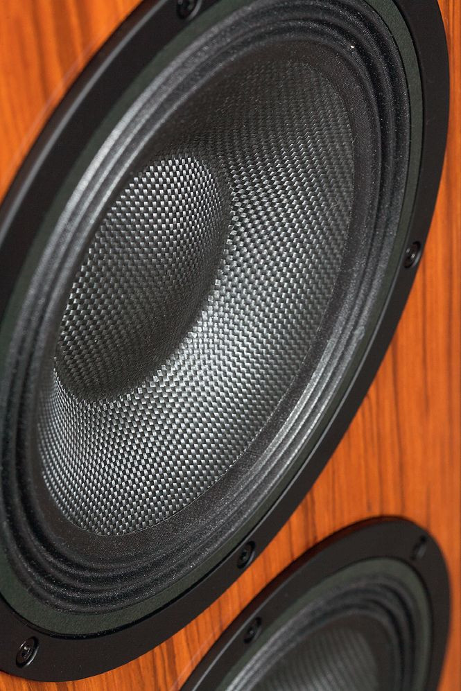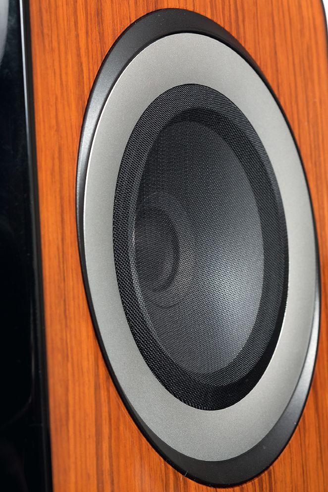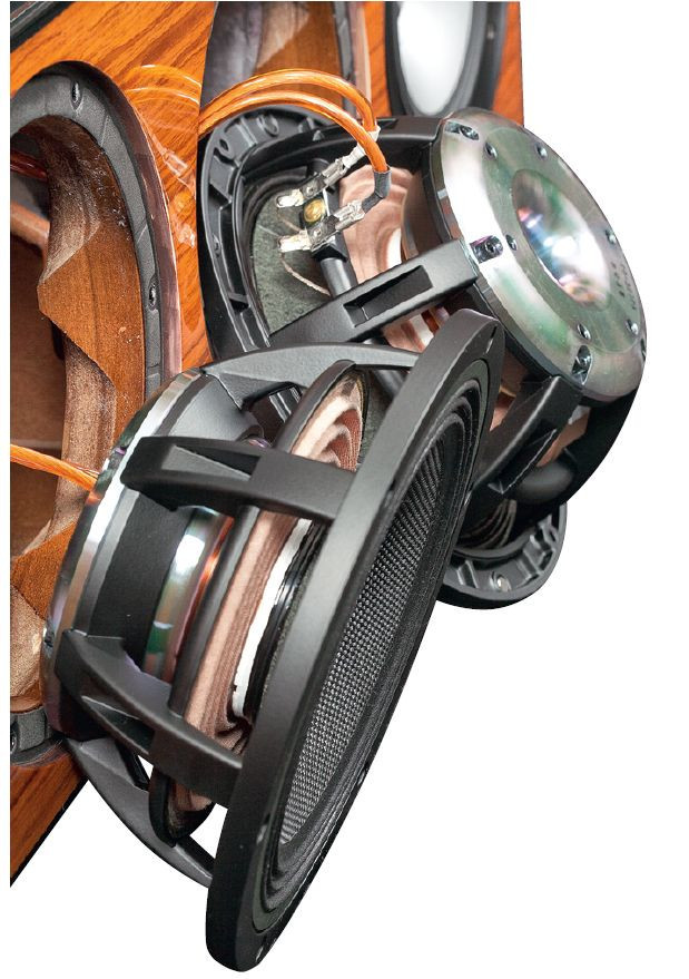Głośniki niskotonowe mają dość nietypową średnicę; producent przedstawia je jako 7-calowe, co po przeliczeniu daje dokładnie 18 cm, ale my za takie uznajemy głośniki z 18-cm koszami, natomiast te mają kosze 20-cm, z kolei współczesne "20-tki" mają zwykle kosze ok. 22 cm.