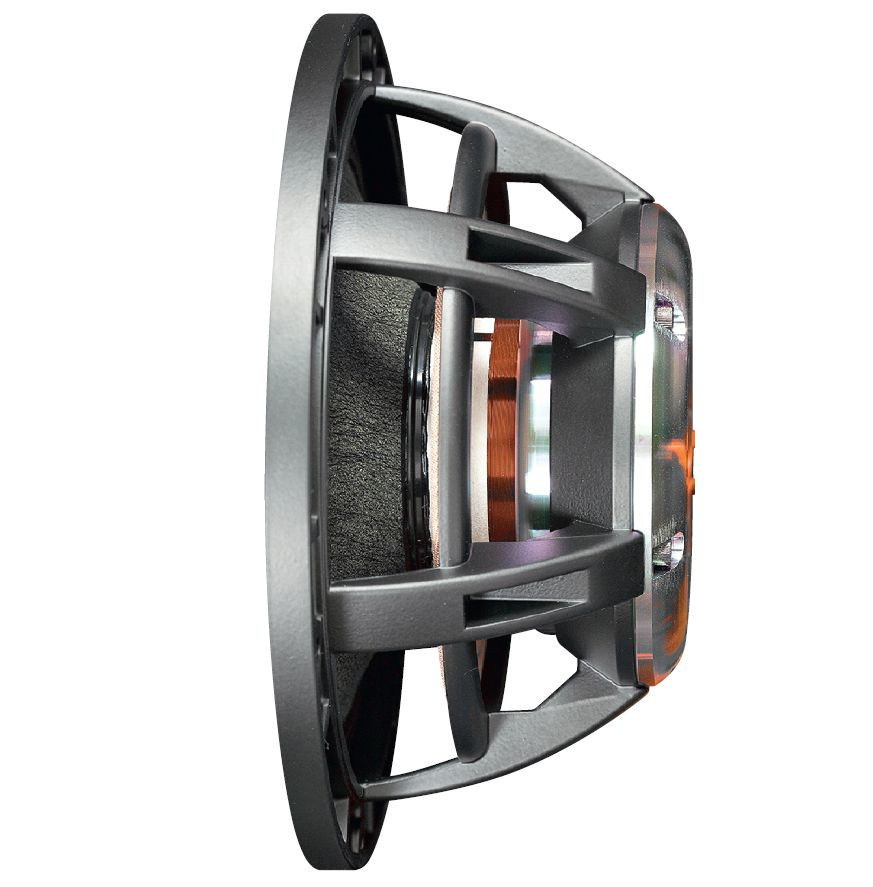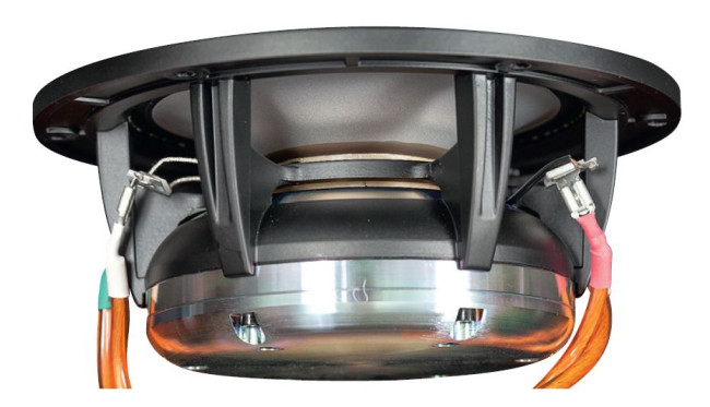 Układ drgający składa się z bardzo sztywnej membrany i dużej cewki. Mimo umiarkowanej wielkości, widać, że to ściśle wyspecjalizowany głośnik niskotonowy.