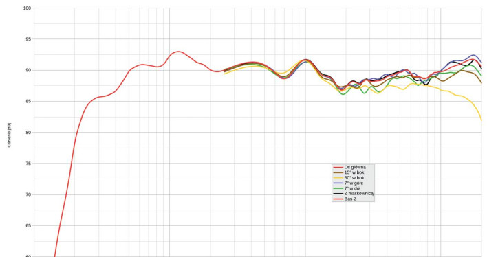 Kolejna dobra wiadomość to wyśmienita zbieżność charakterystyk zmierzonych na różnych osiach w całym pasmie (z wyjątkiem osi 30O, na której "opadają" wysokie tony, co zupełnie naturalne).