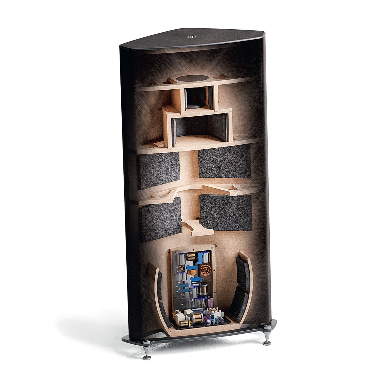 Sonus faber u swojego zarania nadał zespołom głośnikowym specjalne znaczenie. Wcześniej ważna była technika, parametry, brzmienie. Sonus, po pierwsze, zadbał o wygląd w stopniu do tamtej pory nieznany. Zachwycił kształtami, materiałami, detalami; jednym słowem – kunsztem.