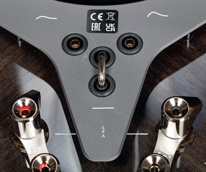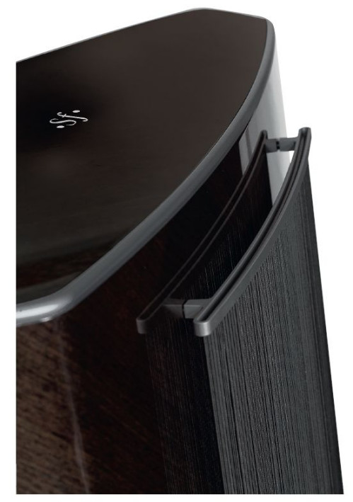 Inny jego wzór (złożony tylko z liter Sf) znajduje się na górnej ściance (ale od frontu go nie widać) i na "grzybkowym" korektorze fazy głośnika średniotonowego, wreszcie na stalowym cokole. Tylko wokół kopułki wysokotonowej błyszczy mały pierścień, powstrzymano się przed dodawaniem nawet najcieńszych błyskotek wokół pozostałych, większych głośników.