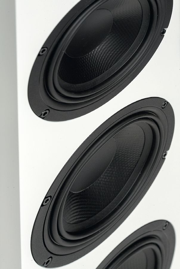 Seria Diva trzyma się mniejszych przetworników (15-cm), więc nawet do obudowy o umiarkowanej wielkości udało się z sukcesem zapakować aż trzy niskotonowe, nie obarczając tego często spotykanym kompromisem wynikającym z zastosowania zbyt wielu/zbyt dużych głośników niskotonowych w nieodpowiedniej (za małej) objętości.