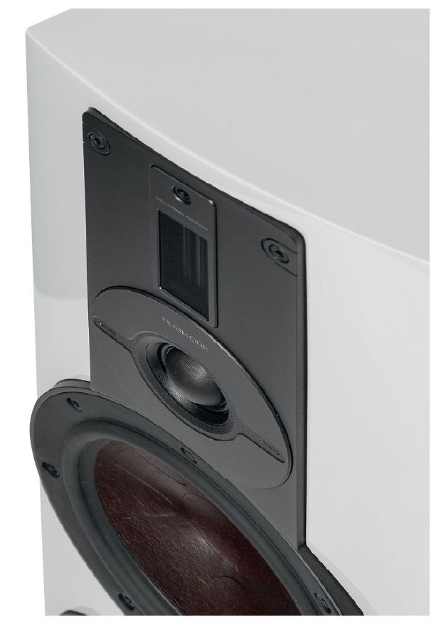 I nie o samą górną częstotliwość graniczną chodzi, ale też o lepsze charakterystyki na skraju pasma akustycznego, chociaż… to rozwiązanie bardzo wymagające od konstruktora, aby opanować stabilne rozpraszanie w płaszczyźnie pionowej – w której trudno będzie utrzymać zgodność fazy promieniowania obydwu przetworników, ze względu na bardzo krótkie fale najwyższych częstotliwości. To tematy omawiane od lat przy wielu kolumnach Dali, ale wciąż aktualne i warte przypomnienia.