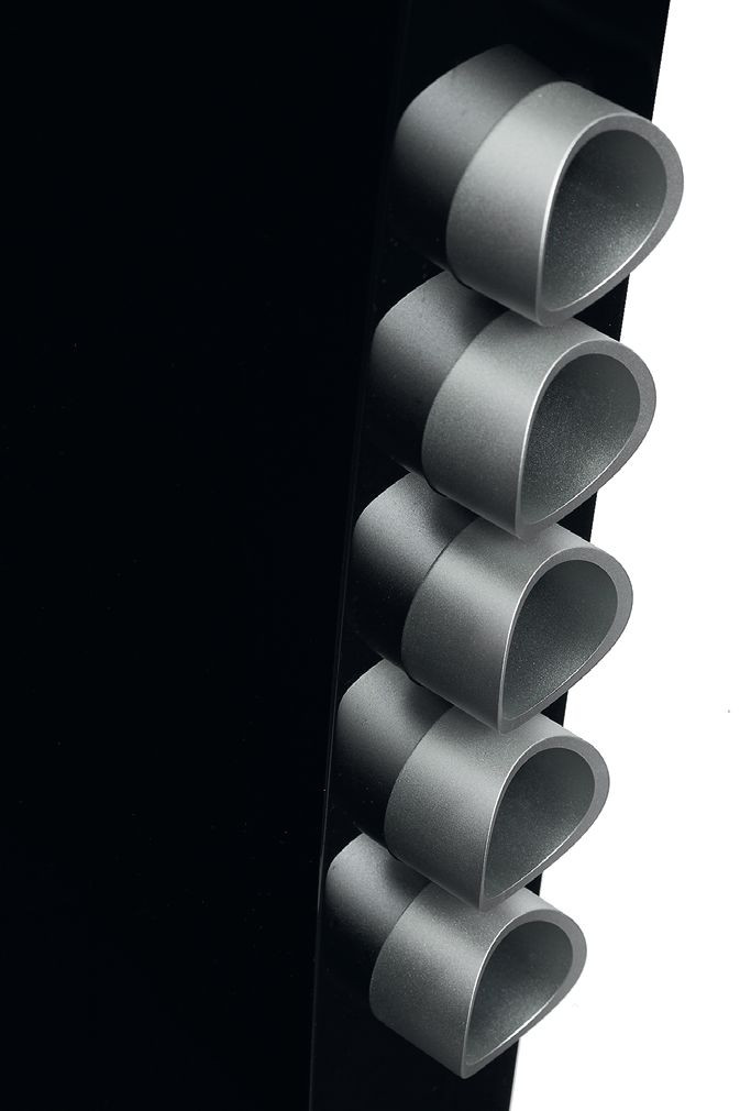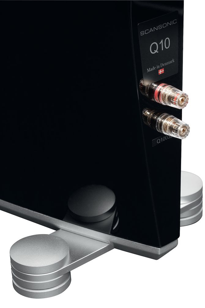 W Scansonikach Q10 wszystko gra na dwa fronty – dobrego brzmienia i dobrego wyglądu. Czasami jednak zaskakuje… Z tyłu wyprowadzono tunele bas-refleks, a jest ich aż pięć, każdy o średnicy 4 cm i długości 15 cm. Dzięki temu, że w każdym tunelu gromadzi się mniejsza masa powietrza, taki bas-refleks jest "szybszy", a więc zachowuje lepszą kontrolę (podobnie jak układ na mniejszych głośnikach, z lżejszymi membranami).