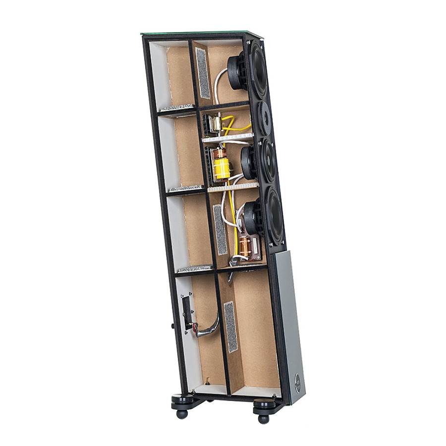 W Audio Physicach jest odwrotnie – wewnętrzna obudowa jest akustycznie szczelna i jest sztywną konstrukcją nośną, a na zewnątrz obłożono ją panelami przymocowanymi do pewnego stopnia elastycznie.