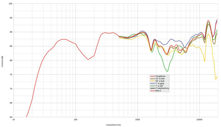 W zakresie wysokich częstotliwości charakterystyka też wygląda ciekawie, kopułkowo-stożkowy głośnik wysokotonowy HHCT sięga skraju mierzonego pasma przy 20 kHz.